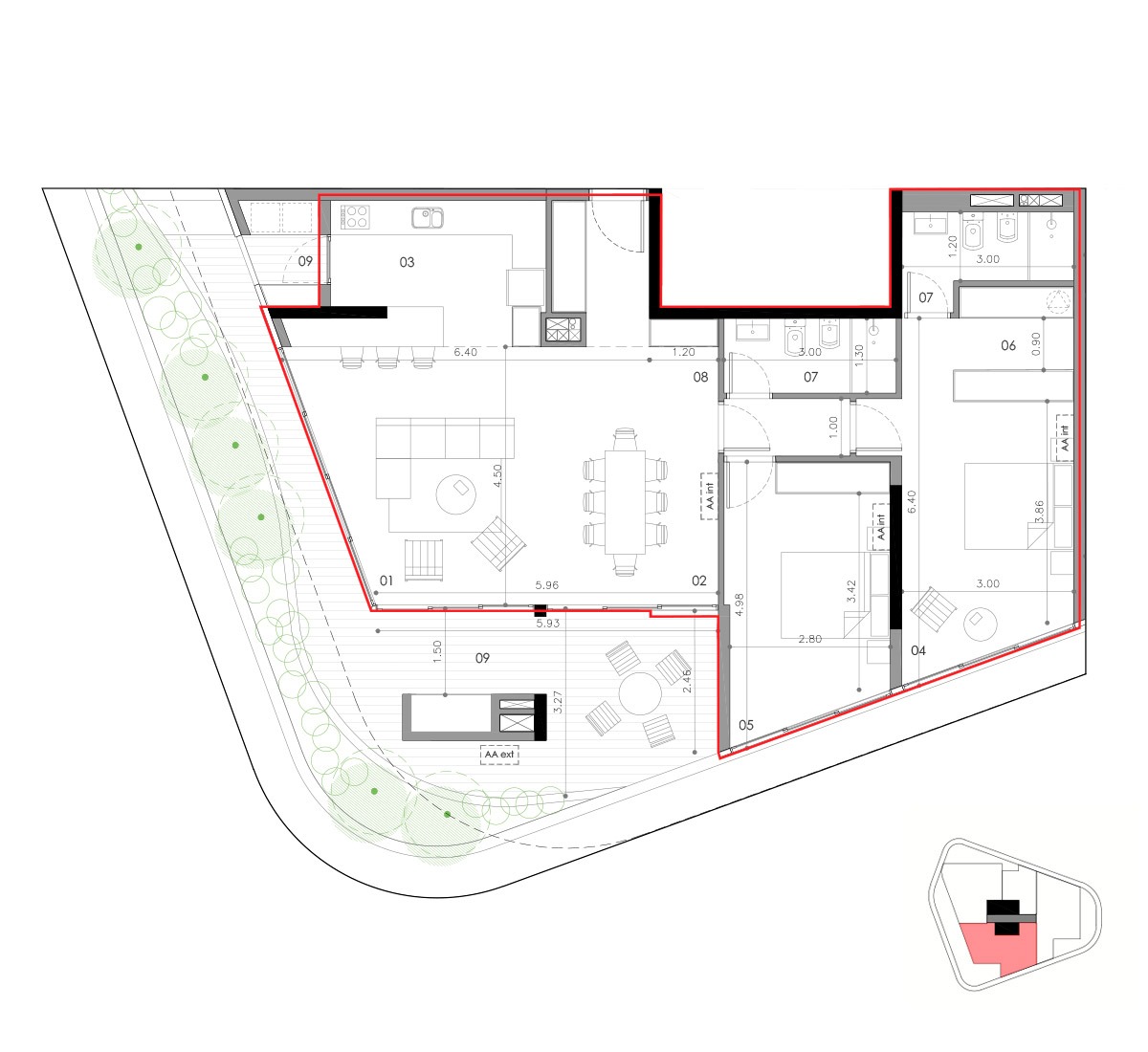 El solarium con jacuzzi suma una experiencia de relax única, perfecta para desconectarte mientras el entorno verde del deck, con césped y árboles, aporta frescura y tranquilidad. Además, cuenta con baño propio, asegurando comodidad para vos y tus invitados.